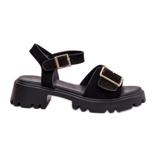 Eko Zamszowe Sandały Damskie Z Klamrą Czarne