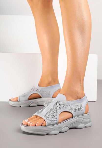 Szare Sandały Sportowe z Elastyczną Cholewką na Grubej Podeszwie Lirasette