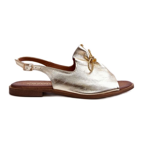 Zazoo 2898 Skórzane Płaskie Sandały Złote G1/2 złoty