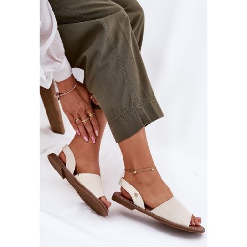 Beżowe Sandały na Płaskim Obcasie z Odkrytą Piątą Klamerką na Nosku i Skórzaną Wkładką Saritaga