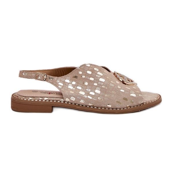Skórzane Sandały Na Płaskim Obcasie Z Ozdobą S.Barski KV51-094 Złote złoty