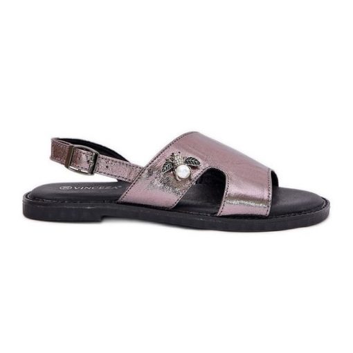 Sandały Damskie Płaskie Z Ozdobnym Detalem Vinceza 17378 Srebrne srebrny