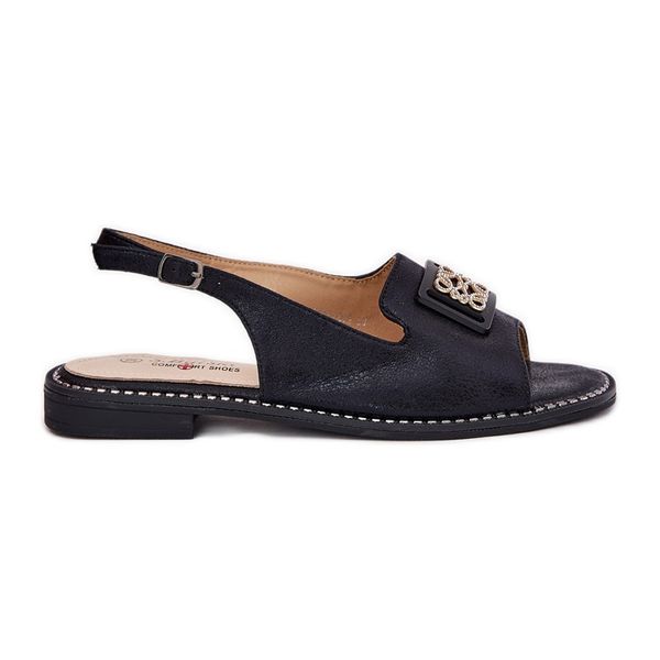 Eleganckie Sandały Damskie Na Płaskim Obcasie Z Ozdobą S.Barski KV51-082 Czarne