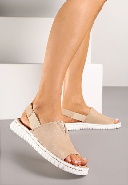 Beżowe Sandały Vices z Ekozamszu na Podeszwie Zdobionej Żłobieniami Saruvelle