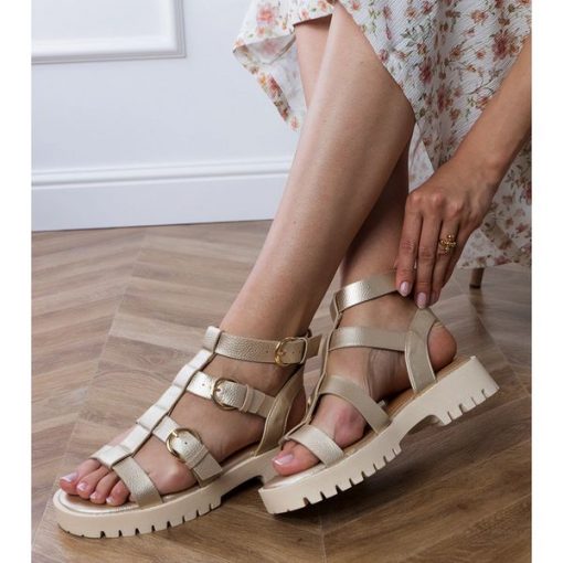 Złote sandały gladiatorki zapinane na kostcę złoty