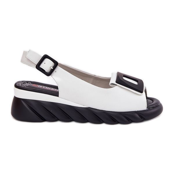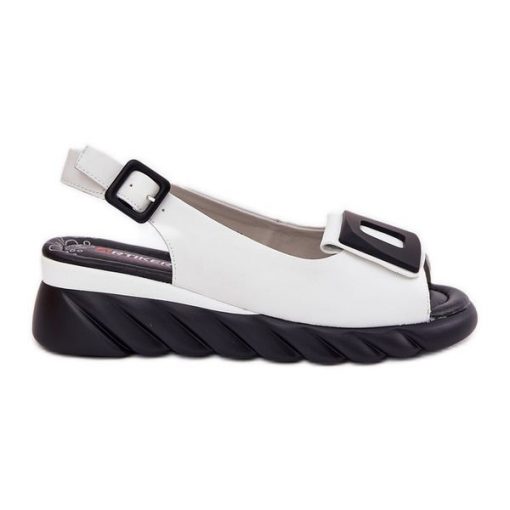 Skórzane Sandały Damskie Na Koturnie z Ozdobą Artiker 56C2157 Białe