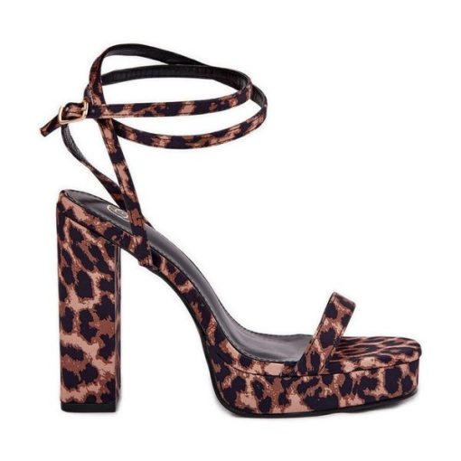 Sandały Damskie Na Słupku Z Paseczkiem Panterka brązowe