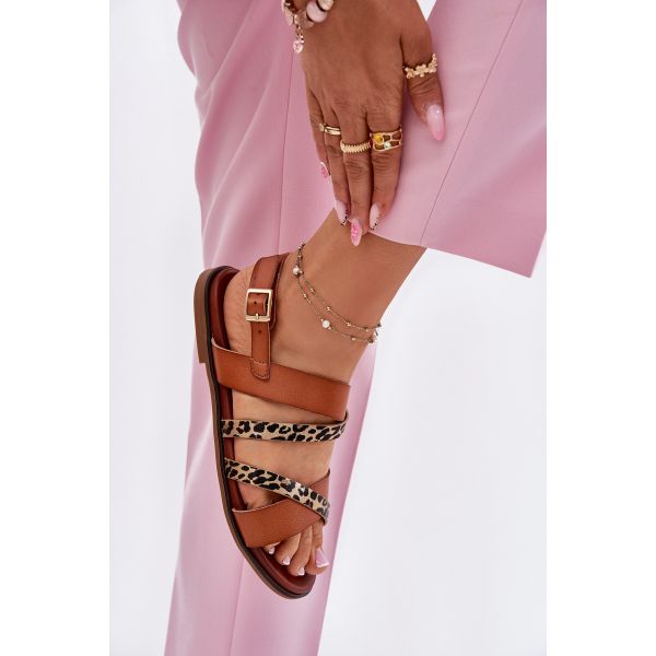 Sandały Damskie Na Płaskim Obcasie Z Paskami Panterka Sergio Leone SK086H Camel brązowe