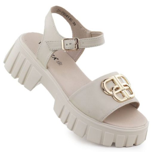 Skórzane sandały damskie na klocku beżowe Vinceza 79541 beżowy