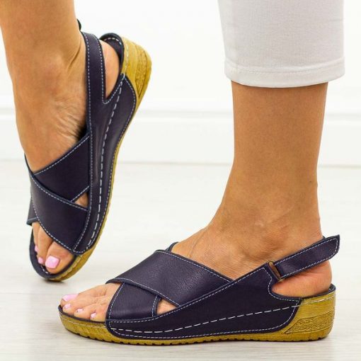 Granatowe skórzane sandały damskie T.Sokolski 311