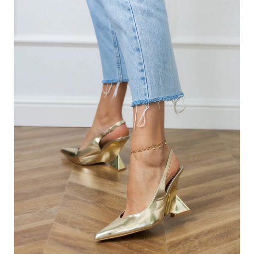 Złote sandały na geometrycznym koturnie Kokkes złoty