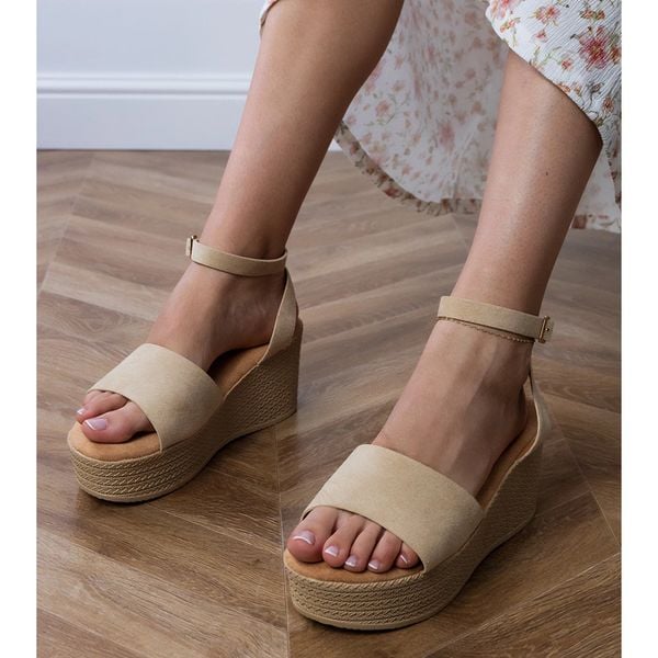 Ciemnobeżowe sandały na platformie z ekozamszu beżowy
