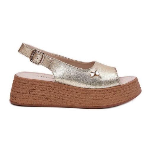 Skórzane Sandały Damskie Na Koturnie Vinceza 41476 Złote złoty