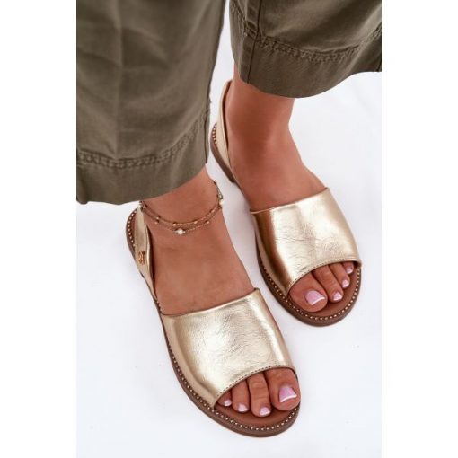 EVento Sandały Damskie Na Płaskim Obcasie Eko Skórzane Złote Dereka złoty