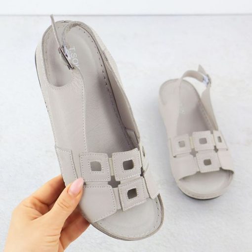 Skórzane sandały damskie komfortowe na koturnie szareT.Sokolski L25-178