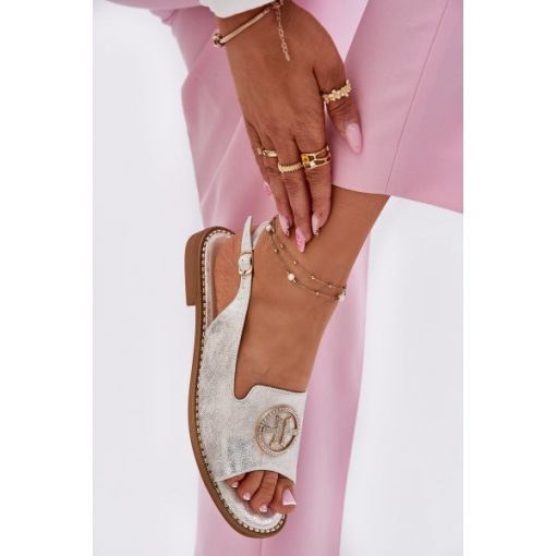 Sandały Damskie Na Płaskim Obcasie Z Ozdobą S.Barski KV51-002 Srebrne srebrny