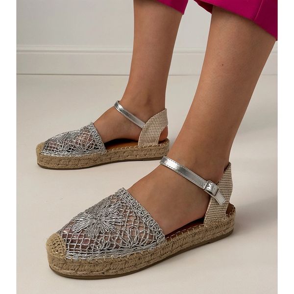 Srebrne sandały espadryle ażurowe Santos srebrny