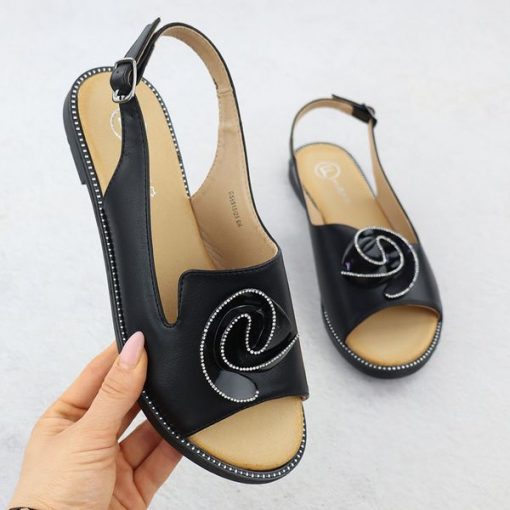 Sandały damskie płaski z kwiatem czarne Filippo DS6915