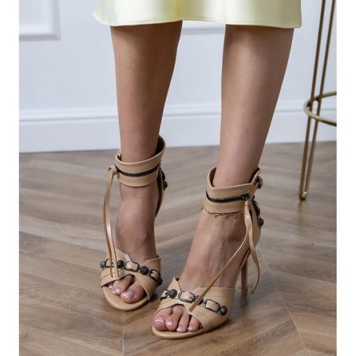 Beżowe sandały na szpilce z ozdobami Trinnis beżowy