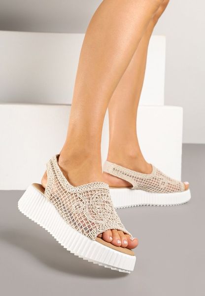 Beżowe Ażurowe Sandały na Grubej Podeszwie z Tłoczeniami Tanarila