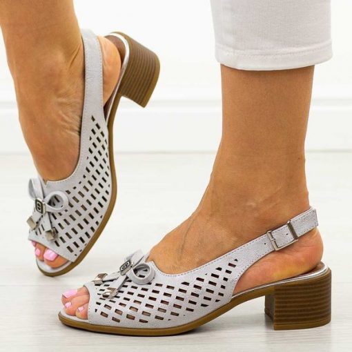 Srebrne sandały damskie na obcasie Jezzi Asa262-6