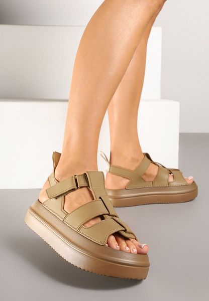 Ciemnobeżowe Sandały w Stylu Gladiatorek z Rzepem Faliniela