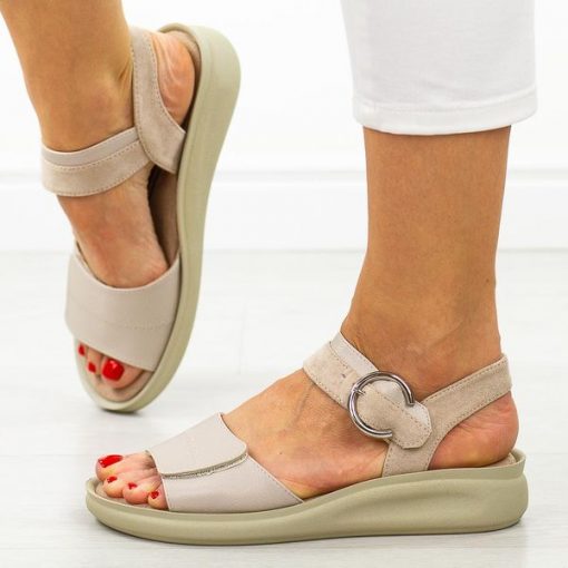 Beżowe płaskie sandały damskie M.Daszyński 24142-10