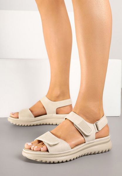 Beżowe Sandały z Ozdobną Perforacją Davillora