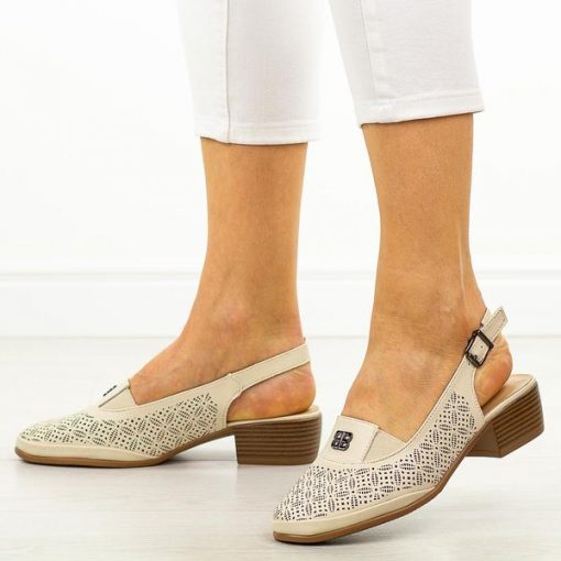 Beżowe skórzane sandały damskie na obcasie Vinceza 66753