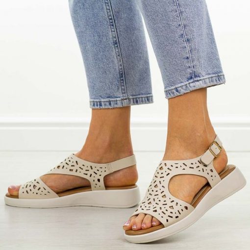 Beżowe sandały damskie na koturnie Sergio Leone sk850