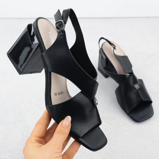 Sandały damskie na ozdobnym słupku czarne Vinceza 62238
