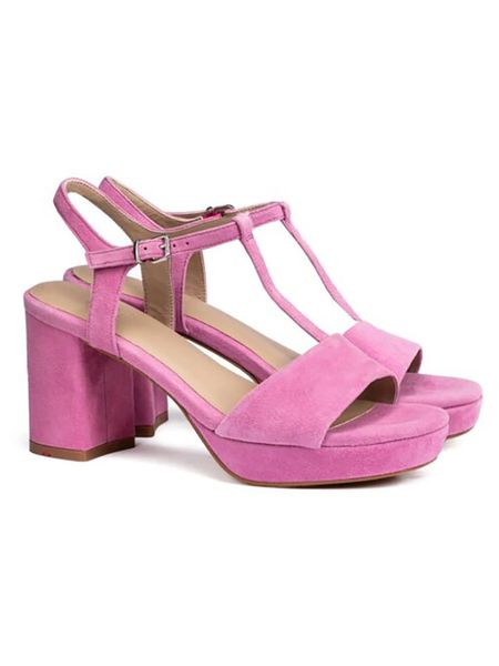 – zamsz- zapięcie: sprzączka- noski: otwarte- skórzana wkładka: tak- forma obcasa: blokowy- podeszwa: antypoślizgowa