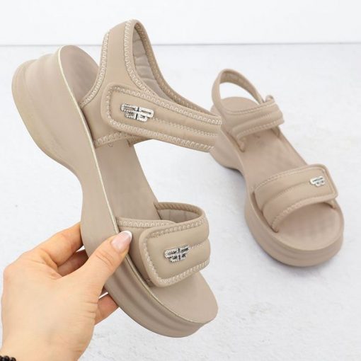 Sandały damskie na grubej podeszwie z rzepami beżowe Potocki 105300