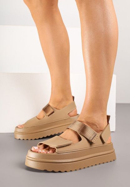 Ciemnobeżowe Sandały w Stylu Chunky na Grubej Podeszwie Zapinane na Rzep Militiela