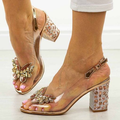 Rose silikonowe sandały damskie na słupku z kryształami, transparentne