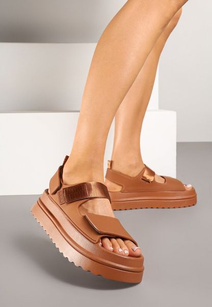 Brązowe Sandały na Grubej Podeszwie z Tłoczeniem Galissena