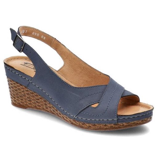 Niebieskie Sandały Pollonus Wygodne Skórzane Buty Damskie