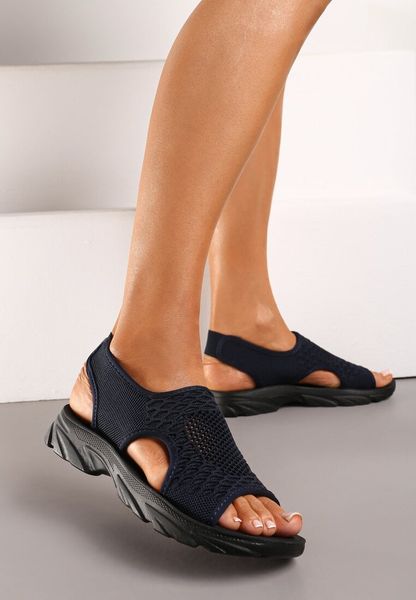Granatowe Elastyczne Sandały Sportowe z Tłoczoną Podeszwą i Skórzaną Wkładką Emptella