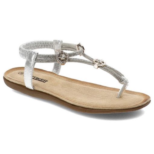 Srebrne Sandały Artiker Wygodne Japonki Damskie