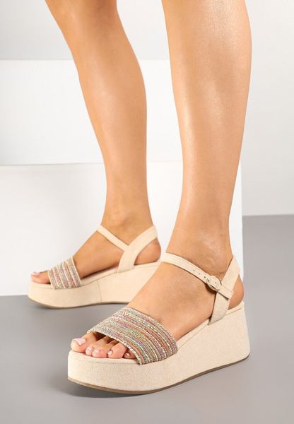 Beżowo-Różowe Sandały na Koturnie ze Sprzączką Paliora