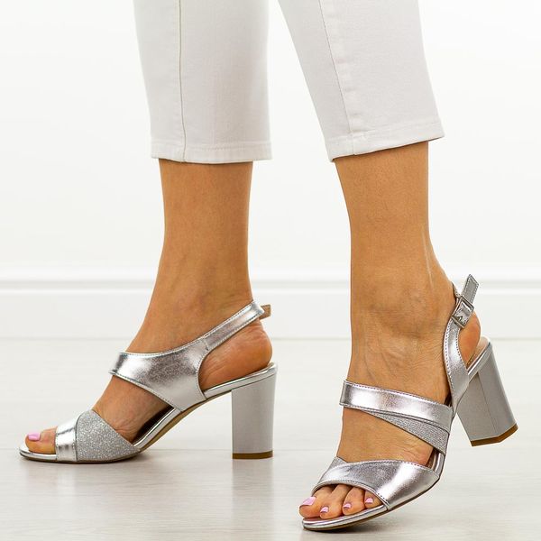 Srebrne sandały damskie na słupku Sergio Leone sk866