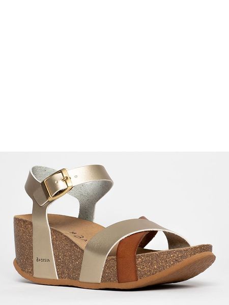– rodzaj zapięcia: sprzączka- noski: otwarte- powierzchnia: metalicznie błyszcząca- skórzana wkładka: ergonomicznie formowana- forma obcasa: koturny- podeszwa: antypoślizgowa- wyprodukowano w Hiszpanii