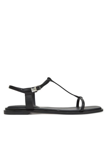 Calvin Klein Sandały Flat Sandal Squared Buckle Lth HW0HW02556 Czarny