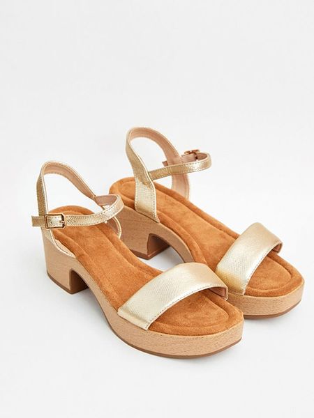 – zapięcie: sprzączka- noski: otwarte- forma obcasa: blokowy obcas z platformą z przodu- podeszwa: antypoślizgowa