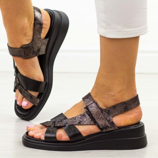 Czarne sandały damskie na koturnie M.Daszyński Sa266-8