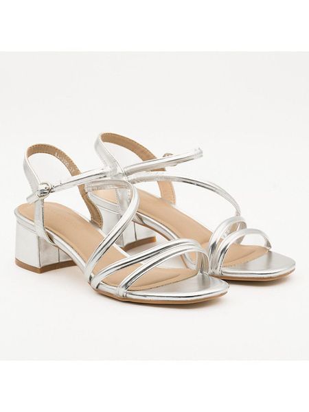 – zapięcie: sprzączka- noski: otwarte- powierzchnia: z metalicznym połyskiem- forma obcasa: blokowy- podeszwa: antypoślizgowa