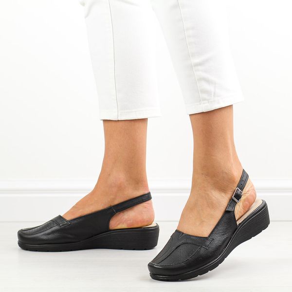 Czarne skórzane sandały damskie na koturnie:są pełnowartościowe w I gatunkusą wyprodukowane w Polsce według surowych norm jakościcholewka jest wykonana ze skóry naturalnej, bardzo miękkiej najwyższej jakościsą starannie wykonane i odznaczają się wysoką trwałościąobcas: 4.5 cm, spód: 1.5 cm Kolor: Czarny GWARANCJA na 12 miesięcy