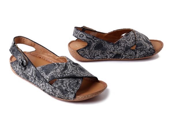 Sandały damskie. Naturalna skóra. Skórzana, miękka, częściowo perforowana wkładka. Zapięcie na rzep. Wygodny koturn. Tęgość F 1/2.