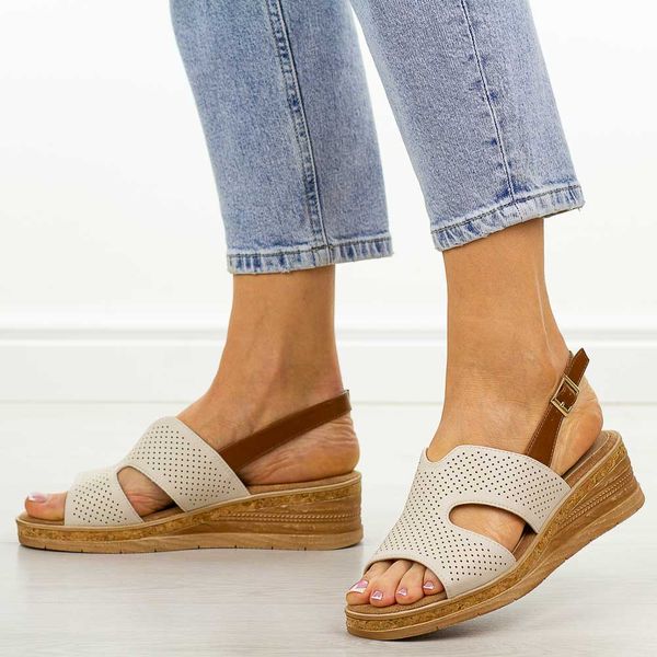 Beżowe sandały damskie na koturnie Sergio Leone sk195