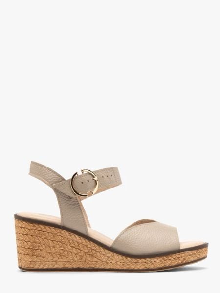 Beżowe sandały na koturnie z linii RYŁKO RELAX.Model wykonany ze skóry licowej.Podszewka i wyściółka skórzana.Ozdobny klin + platforma o wysokości 6 cm.But posiada ozdobną klamerkę w kolorze złotym i gumową wstawkę w cholewce.Dystrybutor: Brawo Sp. z o.o. ul. Dworcowa 19, 34-130 Kalwaria Zebrzydowska; sklep@rylko.comKraj pochodzenia: POLSKA